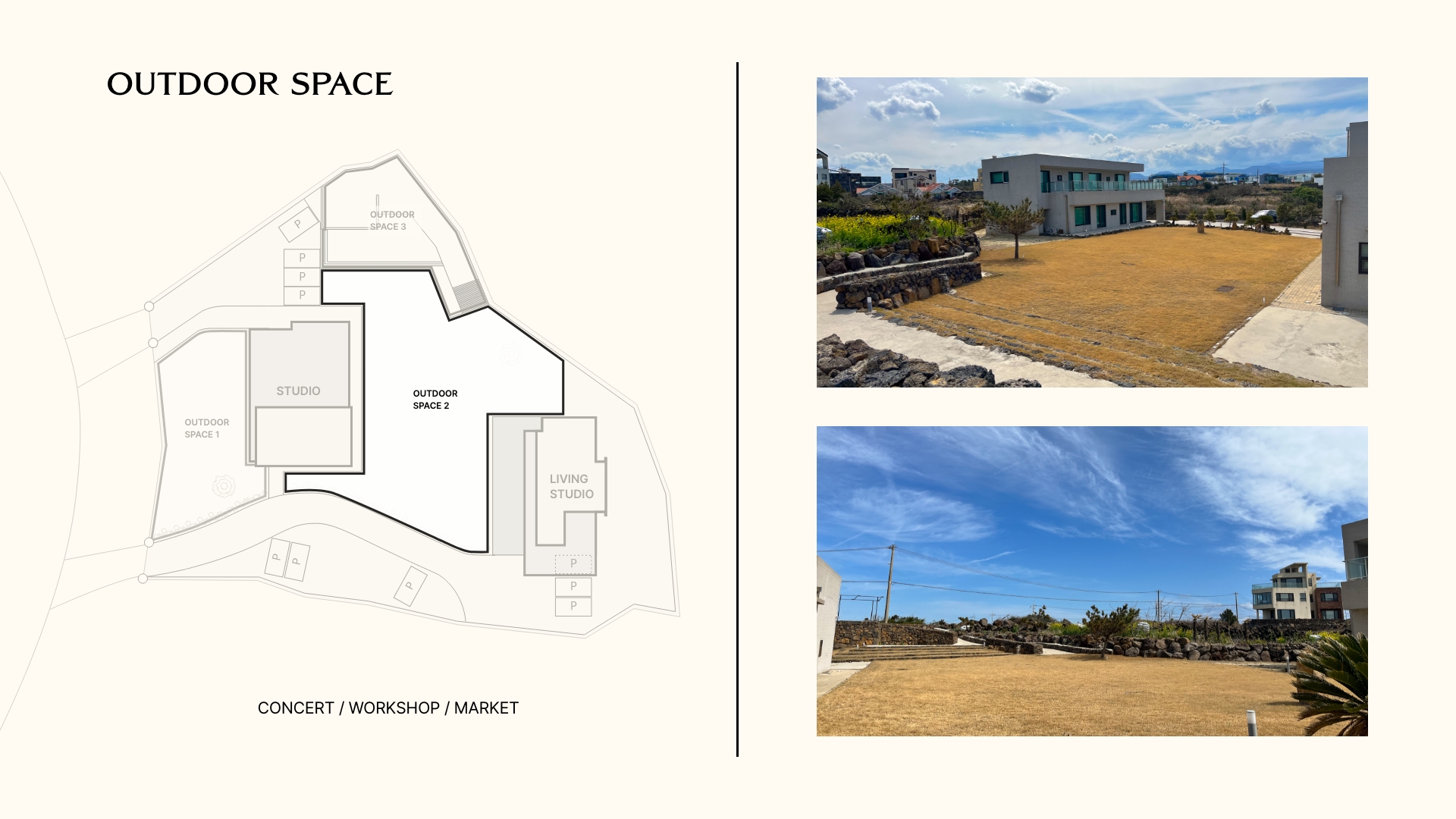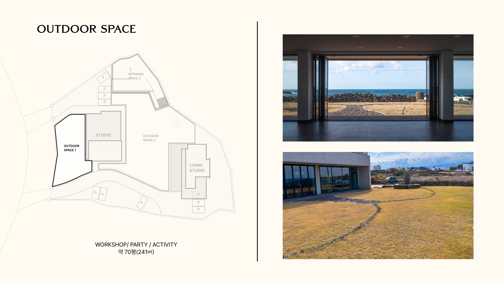 바다를 품은 잔디마당과 많은 인원이 수용가능한 야외공간